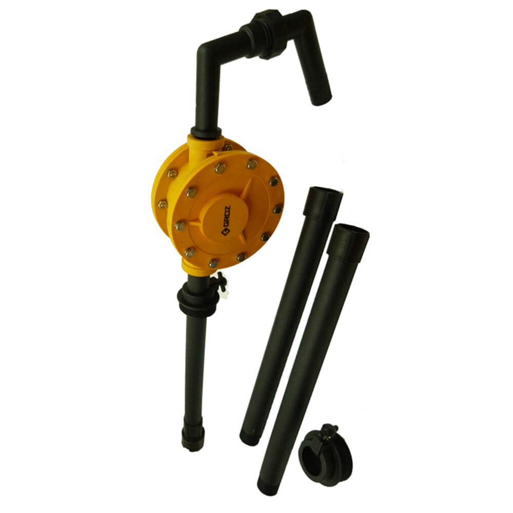 * Completo con tubo de succión roscado de 3 piezas adecuado para su uso en canecas de 50-210 litros.