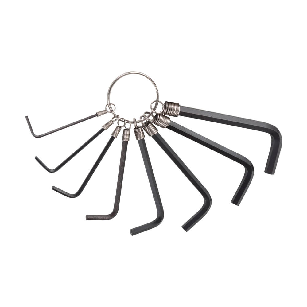 Este juego de 8 piezas incluye los siguientes tamaños de llave hexagonal: 1,5 mm, 2 mm, 2,5 mm, 3 mm, 4 mm, 5 mm, 5,5 mm y 6 mm.