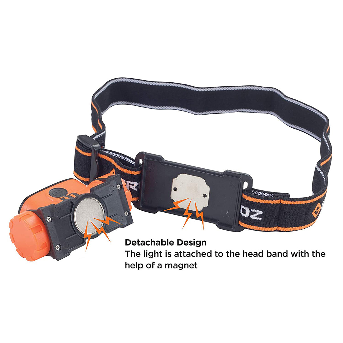 * La luz se une a la banda de la cabeza con la ayuda de un imán.