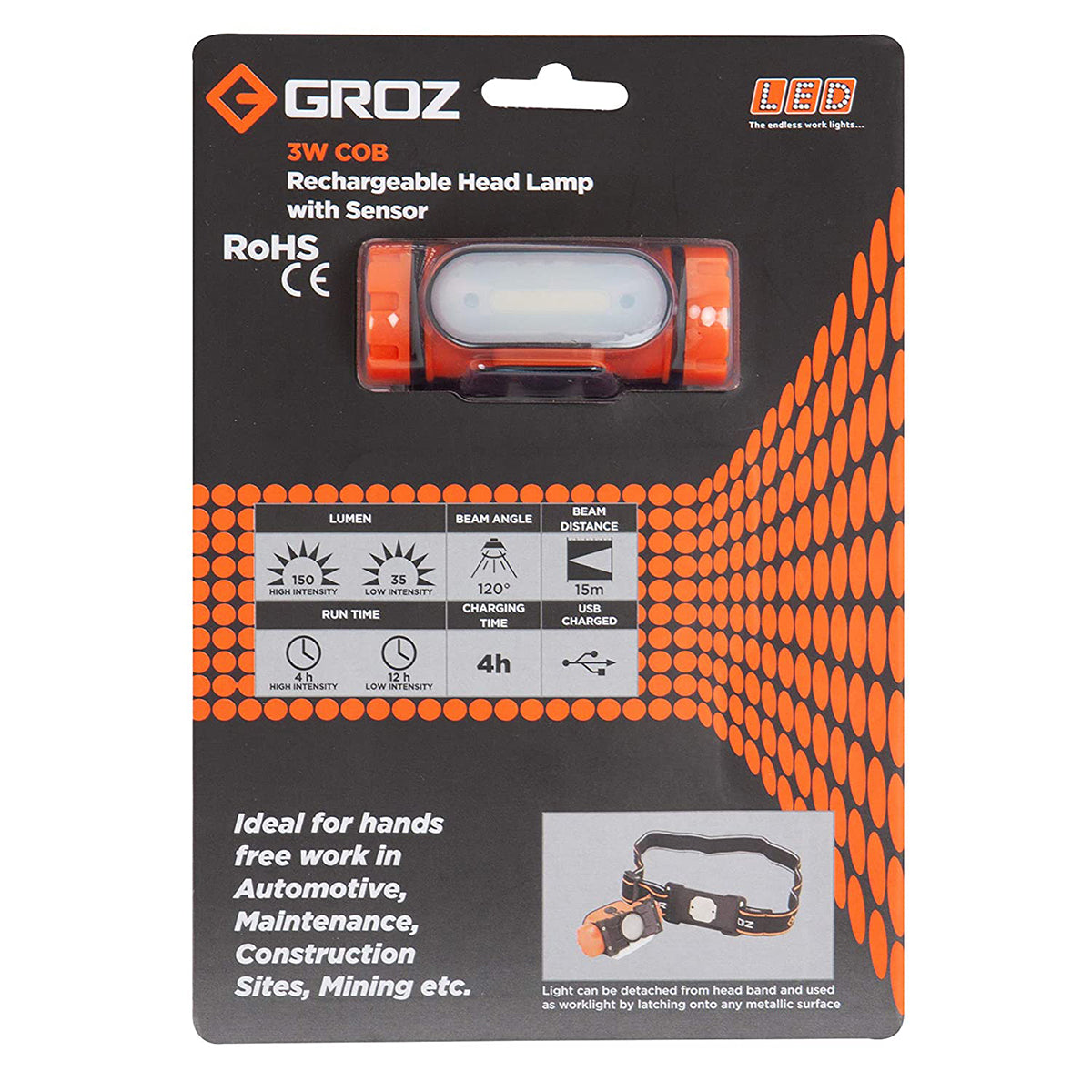 * La linterna de cabeza Groz Powerful 3w Cob produce una luz brillante de hasta 150 lúmenes.