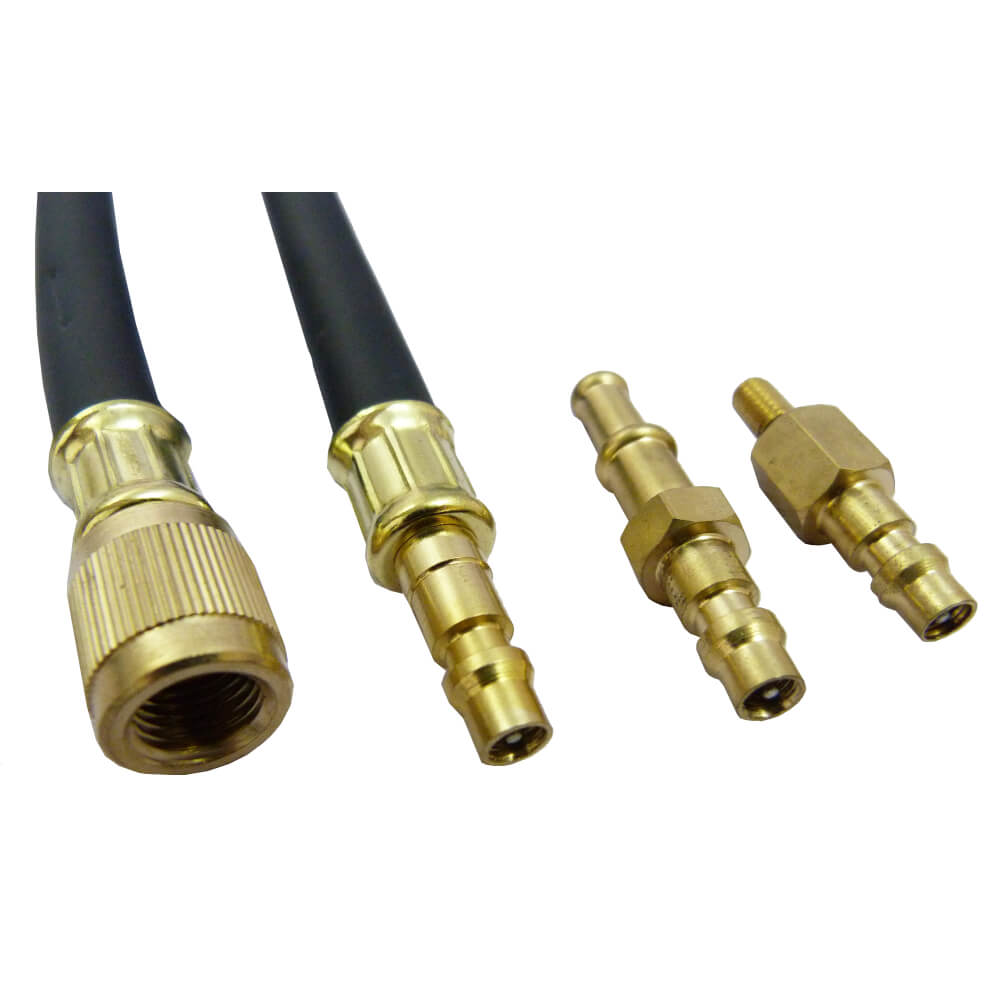 * Completo kit de adaptadores y accesorios para realizar test Schrader (Sistema de inyección de combustible).