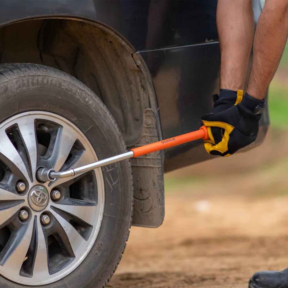 * La llave extensible para tuercas de rueda Groz personifica la excelencia en el cambio de neumáticos, diseñada para desmontar sin esfuerzo las tuercas más difíciles.