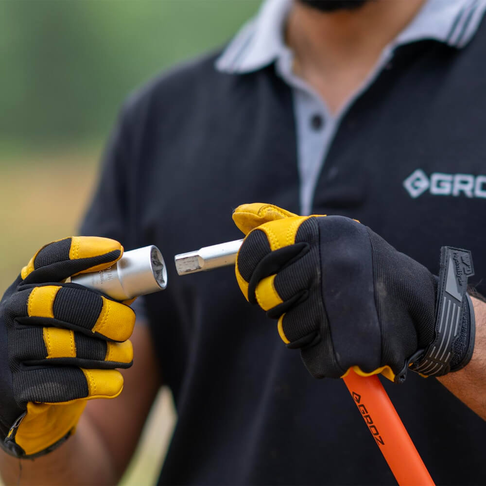 * Fabricada en acero de aleación robusto con un acabado premium con recubrimiento en polvo, la llave Groz cuenta con un mango de TPR para una comodidad ergonómica.